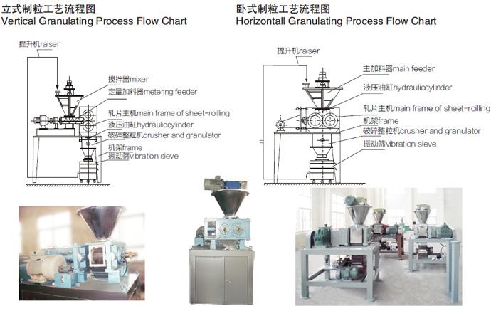 干法制粒机是我厂吸收国外粉体造粒技术而开发的干法造粒设备,并在国外技术的基础上加以改进和提高,结构更加合理紧凑、工艺过程简单、操作方便、性能良好。粉体物料经本设备,无需添加任何粘结剂即可直接制成用户所需要的均匀颗粒,颗粒密度大,均无需再进行后续加工处理,减少了工艺流程,不仅降低了造粒成本,并且减少了粉尘污染,改善工人的劳动环境。