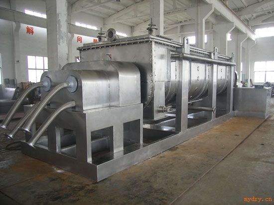 6、操作稳定:由于楔型浆叶特殊的压缩----膨胀搅拌作用,使物料颗粒充分与传热面接触,在轴向区间内,物料的温度、湿度、混合度梯很小,从而保证了工艺的稳定性。